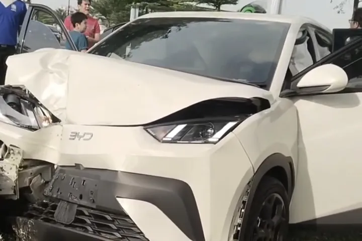 Alih-alih menginjak pedal rem saat harus melambat, pengemudi malah menekan pedal gas. Akibatnya, mobil melesat tak terkendali dan menghantam batang pohon dengan keras. Bagian moncong depan mobil pun ringsek cukup parah.